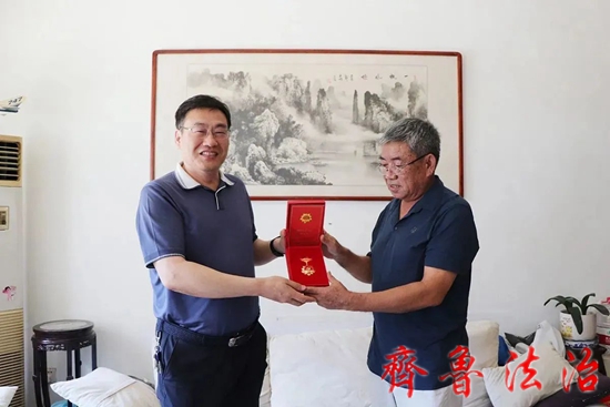 6月30 日,党组书记、院长孙学军为县法院一名老党员颁发“光荣在党50年”纪念奖章。孙院长对老党员的身体与生活状况进行详细了解,向老党员对县法院多年来的贡献致以崇高的敬意。五十载峥嵘岁月,五十载初心如磐。小小的纪念章闪耀着老党员无悔的忠诚,印证着老党员无言的奉献,镌刻着老党员无声的坚守。