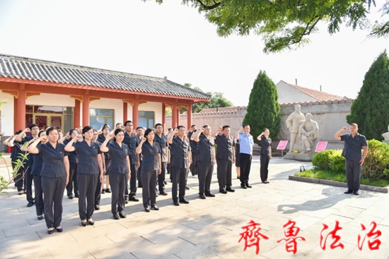为重温革命历史,弘扬爱国精神,6月27日下午,党组书记、院长丁文强带队,组织全体党员干警、入党积极分子等50余人,赴广饶县刘集红色教育基地开展党性教育,踏寻红色遗迹,接受党性洗礼。在讲解人员的带领下,全体党员干警参观了《共产党宣言》纪念馆展厅,全面了解了《共产党宣言》诞生的背景和首版中译本问世、传播、指导中国革命的历程。在刘集党支部旧址,全体党员高举右拳庄严宣誓,重温入党誓词,回顾入党初心,感悟初心使命。