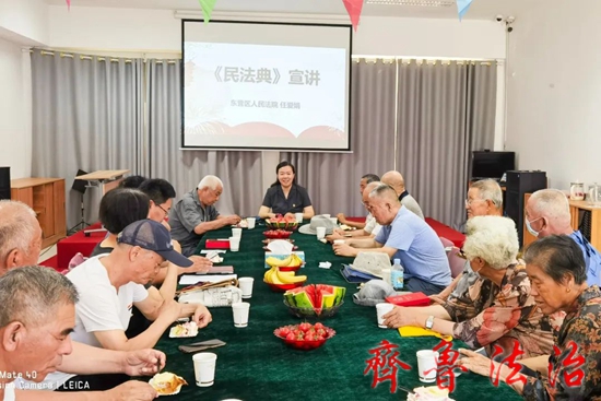 为进一步增强群众法治意识,结合“油地干部下基层”有关工作要求,6月30日上午,东营区法院机关党委选派干警参加了共驻共建单位蓝天社区庆“七一”老党员座谈会,我院民事审判一庭第一团队负责人任爱娟同志针对社区老年群体关注的热点问题,围绕老年人权益保护开展了民法典专题讲座。任爱娟法官结合案例以案释法,围绕子女赡养、遗产继承等热点问题,有针对性地讲解和解答,通过为社区老年群体提供普法宣传和法律援助,进一步提升老年人的获得感、幸福感、安全感。