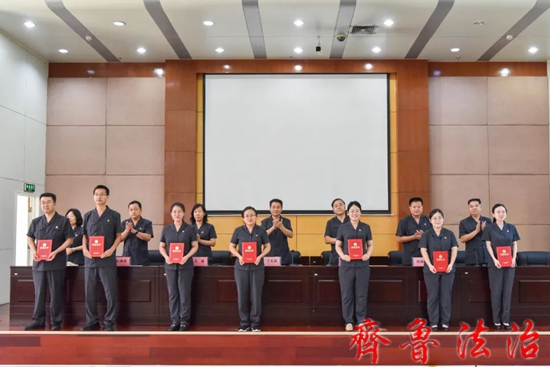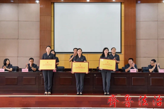 会议通报表扬了2023年度3个先进党支部、10名优秀共产党员、10名党务工作者和2个党员示范岗,并进行颁奖。丁文强同志以“践行习近平法治思想 淬炼新时代法院铁军”为题给全体干警上了一堂生动的党课。