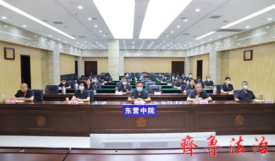 6月27日上午,最高法院党组书记、院长张军围绕“司法审判工作中的党性自觉”为全国四级法院党员干部讲授主题教育专题党课,东营中院组织全市两级法院干警参加收听收看。