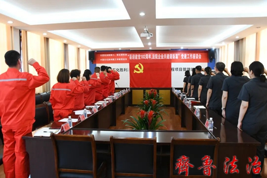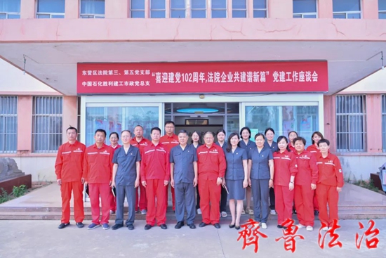 齐鲁法治(东营讯)李春军 为深入学习贯彻习近平新时代中国特色社会主义思想和党的二十大精神,持续推进党建与业务深度融合,充分发挥基层党组织的战斗堡垒作用。6月26日上午,东营市东营区法院第三、第五党支部与中石化胜利建工市政工程项目管理部党总支在建党102周年到来之际,联合开展“不忘初心跟党走,砥砺奋进迎七一”为主题的特色共建活动。