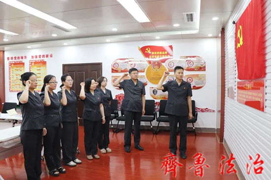 全体党员在支部书记王强儒的带领下重温入党誓词,牢记政治责任和历史使命,以更加饱满的热情投身到工作中,永葆共产党员的政治本色。