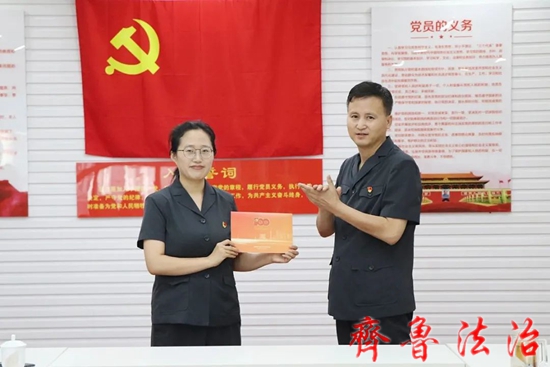 “今天是你的生日,希望你时刻牢记党员身份,增强党员意识,注重党性修养,践行入党誓词,做廉洁自律的楷模,永葆共产党人的先进性。”支部书记为程燕同志送上了一份特别的生日礼物——记载着入党纪念日的贺卡。