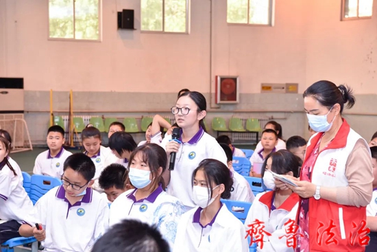 授课结束后,张婷法官对学生们写在小纸条上的问提进行了一一解答,正当防卫、性骚扰、如何保护自己……良好的互动不但真正解决了学生身边常见的困难和疑惑,而且为学生传递了正确的价值观、法治观,让学生对法律产生了崇高的敬意。
