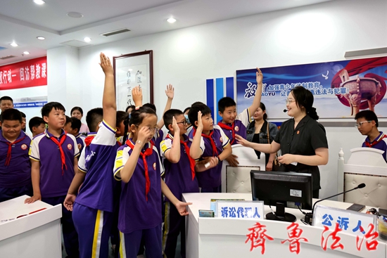 齐鲁法治(临沂讯)于清林 当“六一”儿童节遇到“法院开放日”,会擦出怎样的火花?6月1日上午,在第73个“六一”国际儿童节到来之际,山东省郯城县人民法院举办“放飞梦想,法治护航 ”为主题的开放日活动,邀请郯城第一实验小学120余名四年级小学生上门过节,“沉浸式”了解法院工作,感受法院文化,体会司法魅力,增强法治意识。