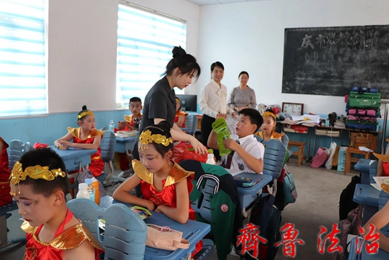 齐鲁法治(东营讯)李春军 5月31日,在“六一”国际儿童节来临之际,东营利津法院少年法庭法官联合“津心呵护”普法教育宣传志愿者徐蕾、张锦绣走进南宋小学,为学生们送上一堂别开生面的法治教育课。