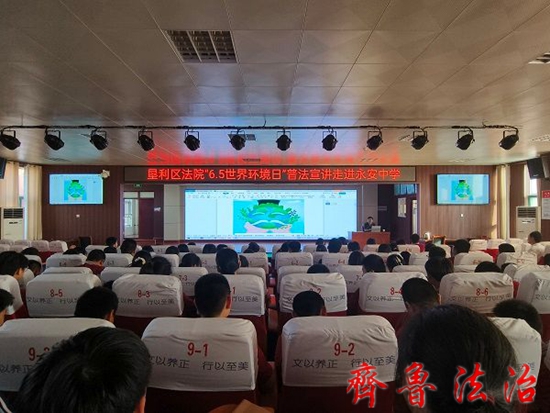 齐鲁法治(东营讯)李春军 为宣传倡导生态文明理念,引导青少年积极参与生态文明建设,5月29日下午,东营垦利区法院环境资源审判团队干警走进永安中学开展“6.5环境日”普法宣讲活动。