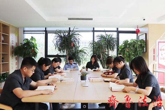 5月29日上午,东营利津法院组织部分党员干警在城市书房“灯塔书屋”开展“奋进新时代 好书共品读”主题集中读书活动。