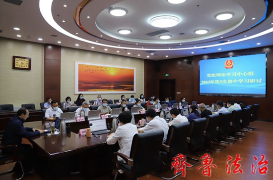 齐鲁法治(东营讯)李春军 5月24日,东营中院党组理论学习中心组围绕“深入学习习近平总书记关于中国式现代化的重要论述,准确把握中国式现代化的中国特色和本质要求等重大问题,为中国式现代化建设提供坚强有力的司法保障”专题进行学习研讨。会上,集中学习了《党的二十大精神专题讲座——以中国式现代化全面推进中华民族伟大复兴》《习近平总书记在学习贯彻党的二十大精神研讨班开班式上的重要讲话精神》《中共山东省委关于深入学习宣传贯彻党的二十大精神的决议》等。党组书记、院长赵国滨主持会议并讲话,党组理论学习中心组成员、副院长、协管领导、县级干部、庭室正职(含负责人)参加学习研讨。