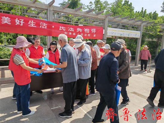 5月23日,东营利津法院陈庄法庭组织干警走进陈庄中枢广场、盛苑小区,开展“民法典宣传月”普法宣传活动。