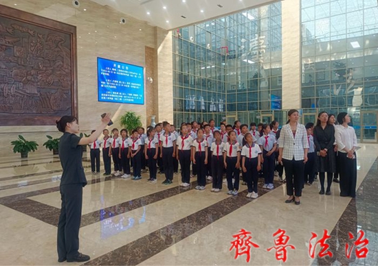 齐鲁法治(东营讯)李春军 青少年是祖国的未来、民族的希望。为加强青少年法治教育,使广大青少年学生从小树立法治观念,养成自觉守法、遇事找法、解决问题靠法的思维方式和行为方式,5月22日上午,东营中院开展法院开放日,胜利锦苑小学50余名师生走进法院,“零距离”感受法治氛围,根植法治梦想。