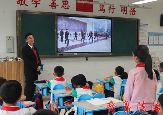 东营中院民四庭干警、选派华山小学法治副校长(兼职)袁永林同志到联系服务的东营经济技术开发区华山小学,零距离走进课堂、近距离走近学生身边,为学生们作了一堂生动活泼的道德与法