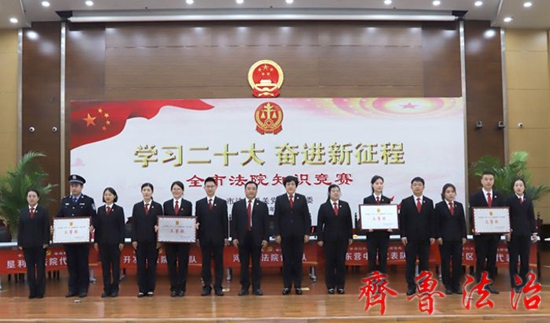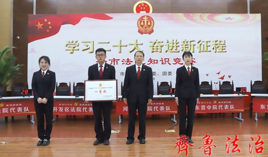在紧张激烈的比赛后,利津县法院代表队获得一等奖,东营中院、河口区法院代表队获得二等奖,东营区法院、垦利区法院、广饶县法院、开发区法院代表队获得三等奖。