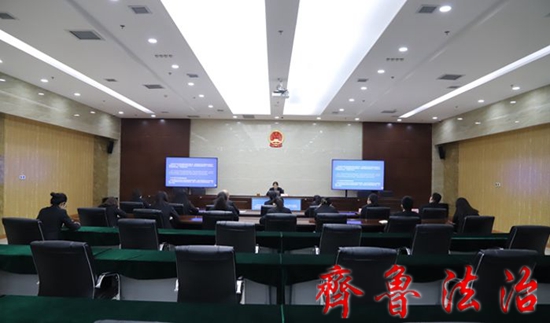 东营中院组织召开涉外商事审判业务培训会,全市两级法院从事涉外商事案件立案和审判工作的员额法官和法官助理参加会议。