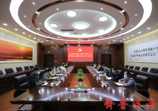东营市直机关党建工作第一联系片区党建调研及交叉互查工作部署会议在市法院召开,市委市直机关工委副书记韩兵,第一片区19个单位专职党务干部参加会议。