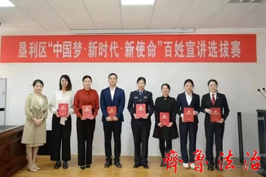 齐鲁法治(东营讯)李春军 近日,东营市垦利法院刑事审判庭赵岳参加了垦利区直机关工委、区总工会组织的“中国梦 新时代 新使命”百姓宣讲活动,演讲作品《共筑中国梦,启航新征程》荣获三等奖的好成绩。