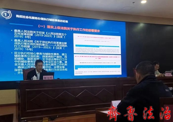 齐鲁法治(东营讯)李春军 4月21日,东营中院执行局局长解旭明就购买社会化服务办理执行辅助事务为题,在2023年度全省法院执行局长培训班上作经验交流。