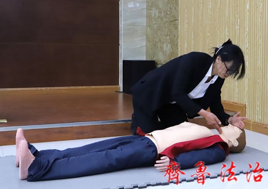 东营区疾病预防控制中心健康教育科负责人李海燕通过生动形象的授课和专业到位的现场演示互动,介绍了心肺复苏术和海姆立克急救法的知识和操作要领。通过开展此项活动,使干警树立大健康观念,学习急救知识,有效提升工作和生活的基本健康保健技能。