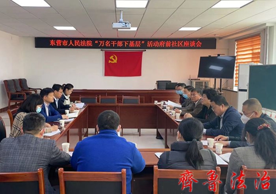 3月31日上午,东营中院与双报到府前社区召开“万名干部下基层”工作对接座谈会。