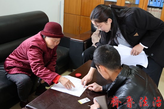 被骗去养老钱的季大娘和冯大娘在家人的陪同下来到郯城法院刑事审判庭,核对身份信息、钱款数额,签字,一步步走完程序,老人们终于拿回了“走失”的养老钱。