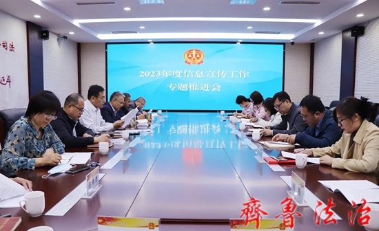 齐鲁法治(东营讯)李春军 为进一步做好信息宣传工作,全面总结特色亮点工作,充分展现我院良好形象,4月10日,东营利津法院召开2023年度信息宣传工作专题推进会,党组书记、院长孙学军出席会议并讲话,办公室主任王新同主持会议,各庭室负责人及综合办公室信息宣传工作人员参加会议。