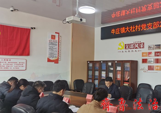 东营中院驻村组主持召开大杜村党支部2022年组织生活会,东营区委常委、统战部部长王海明到会指导,牛庄镇党委副书记燕婷婷、组织委员常浩参会