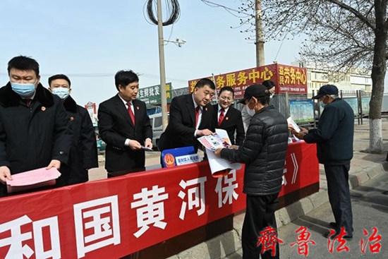 齐鲁法治(东营讯)李春军 3月24日上午,东营市垦利区法院联合黄河河务、检察、水利、司法等部门进行普法宣传并在垦利黄河河务局召开《黄河保护法》宣传及黄河生态保护座谈会。区法院党组成员、审判委员会专职委员周卫亭参加。