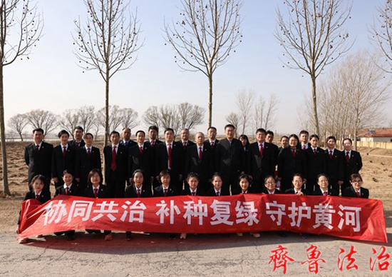 齐鲁法治(东营讯)赵永翠 深入推进《黄河保护法》宣传实施,加强黄河三角洲生态保护修复,近日,东营市中院与黄河河口管理局、市生态环境局、利津法院在“黄河口湿地生态环境综合修复基地”开展“补种复绿 守护黄河”修复基地建设暨法治宣传活动,东营中院副院长宋学民,利津法院院长孙学军等参加活动。