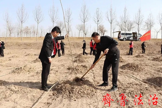 齐鲁法治(东营讯)李春军 春回大地万物复苏,植绿造林正当其时。3月10日,东营利津法院组织干警分两批次开展义务植树活动,为保护黄河生态、共建美丽家乡贡献法院力量。