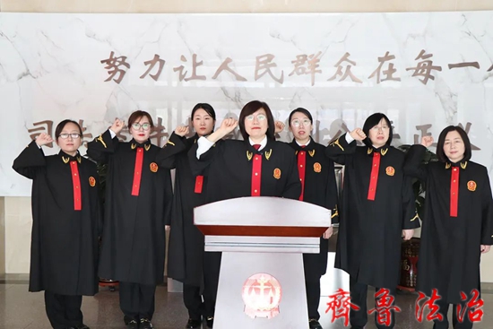 齐鲁法治(东营讯)李春军 3月10日是第二个“女法官国际日”,为全面展现女法官积极投身新时代法院建设的职业风采和良好形象,进一步增强女法官的职业尊荣感、使命感和责任感,东营利津法院组织全体女法官举行宪法宣誓仪式。