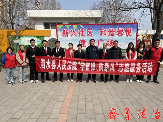 济宁泗水县法院派出法庭第一、二党支部组织党员干警走进泗水县济河街道新兴社区,开展“学雷锋、树新风”志愿服务活动