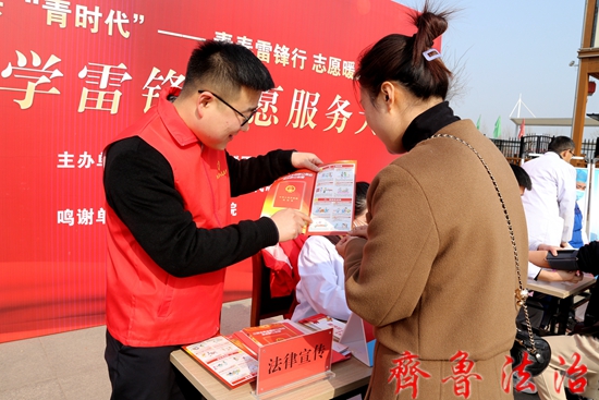 齐鲁法治(临沂讯)李春军 3月5日,山东省郯城县人民法院青年干警们响应号召,积极参加“学雷锋文明实践志愿服务大集”,现场为群众发放普法材料,提供优质、便利的法律咨询服务,用实际行动践行雷锋精神。