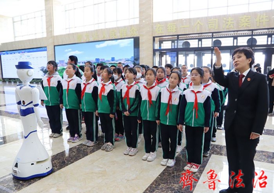 齐鲁法治(东营讯)李春军 穆穆清风至,盎然春意来。3月1日,东营胜利运输小学四年级一班的少先队员迈着轻快的步伐,踏进东营市中级人民法院审判法庭,开启了一场法治寻梦之旅。