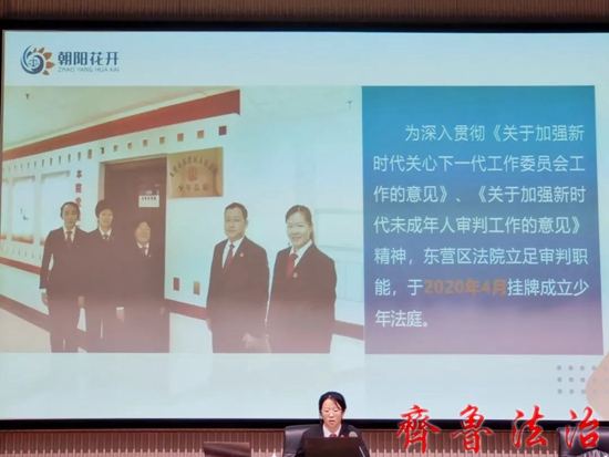 近日,全省法院少年审判工作先进经验交流会在省法官学院召开,张婷法官代表东营区法院作为全省少年审判工作先进集体作了经验交流。