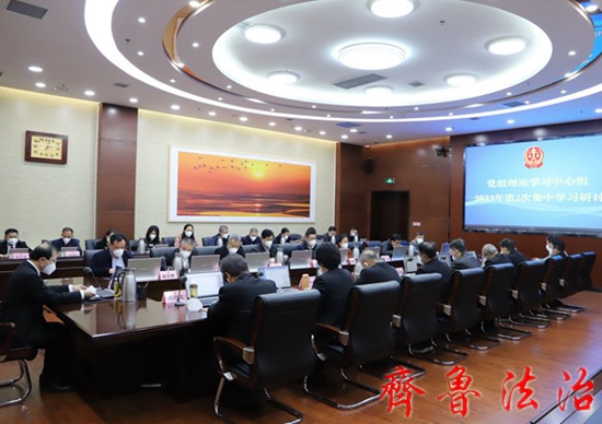 2月24日下午,东营中院党组理论学习中心组围绕“深入学习习近平总书记关于全面从严治党的系列论述,以永远在路上的清醒推进人民法院从严治党向纵深发展”专题进行集中学习研讨