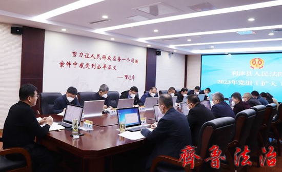 齐鲁法治(东营讯)李春军 2月27日下午,东营利津法院召开专题党组扩大会议,传达学习全市法院院长会议精神,重点学习赵国滨院长在全市法院院长会议上的讲话,并研究贯彻落实意见。党组书记、院长孙学军主持会议并讲话,班子成员、专委、各庭室负责人参加会议。