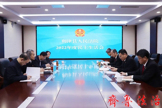 齐鲁法治(东营讯)李春军 2月20日下午,东营利津法院党组召开2022年度民主生活会。市中院党组成员、副院长巴沾军,诉讼服务中心副主任纪珊,县委政法委副书记程东升,县纪委监委派驻第四纪检监察组组长陈刚到会指导。党组书记、院长孙学军主持会议,班子成员参加会议。