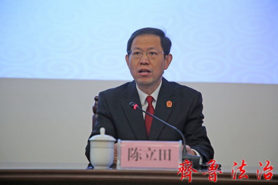 陈立田院长回顾了近年来人民陪审员工作的情况;对人民陪审员提升认识、增强工作责任感、努力提升陪审工作能力水平、积极参与人民陪审工作提出建议;强调人民陪审员要切实增强政治意识、法治意识、宣传意识、监督意识,做好不穿法袍的“法官”,努力为司法事业在新时代实现新进步做出贡献。