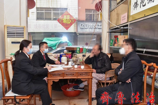 2月7日,东营市东营区法院民一庭第二团队程全刚法官上门调解一起民间借贷纠纷。