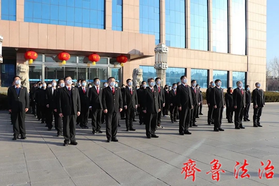 齐鲁法治(东营讯)李春军 岁序更迭,华章再启。1月28日,兔年春节后首个工作日,东营利津法院举行升国旗仪式。党组书记、院长孙学军出席仪式并发表新年致辞,全体干警参加仪式。