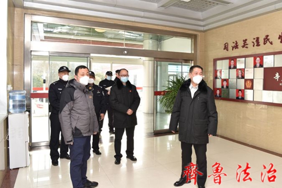 齐鲁法治(东营讯)李春军 为进一步加强全省“两会”及春节期间法院机关和法庭安全保卫工作,东营市东营区法院院长丁文强带队对机关、法庭安全保卫工作进行督导检查。