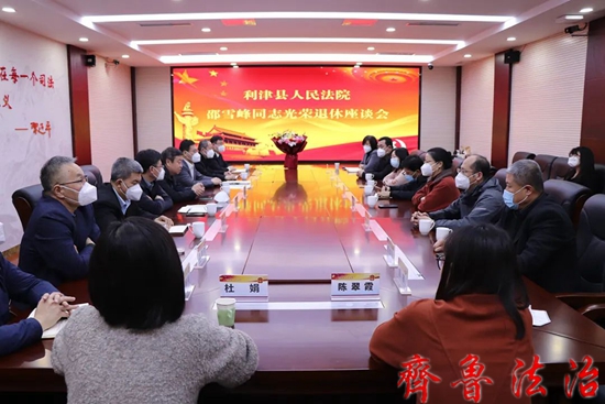 齐鲁法治(东营讯)李春军 为充分体现利津法院对退休干部的关心厚爱,切实增强退休干部尊荣感、自豪感、归属感,1月13日下午,东营利津法院召开座谈会欢送邵雪峰同志光荣退休。党组书记、院长孙学军出席座谈会并讲话,党组副书记、副院长盖盛永主持会议,班子成员及干警代表参加。