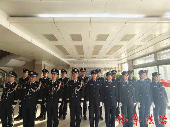 全体司法警察着警礼服举行了升国旗仪式、列装集体合照、重温入警誓词、合唱司法警察之歌等活动。通过此次活动,真切表达了司法警察对司法事业的无限忠诚与热爱,进一步增强了司法警察的职业荣誉感、责任感、使命感。