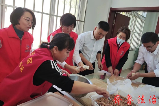 民庭党支部书记、庭长许孝坤首先对网格员们长期坚守岗位,为社区安全稳定尤其是疫情防中作出的努力与贡献表达诚挚敬意和衷心感谢,为与会人员详细讲解了有关疫情防控的相关法律法规,就网格员如何依法履职提出相关建议,为其顺利完成疫情防控任务提供了坚实的法律后盾,并细致解答网格员在工作生活中遇到的法律问题。课后,民庭支部和妇联支部党员与网格员们一起包起了饺子,在热火朝天的交谈中拉近了彼此的距离,也增加了对双方工作的了解。