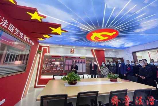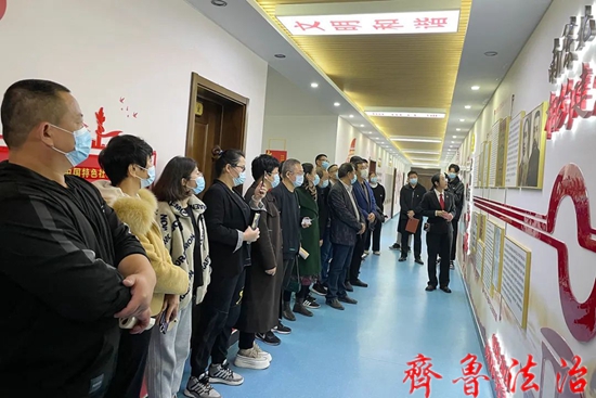 齐鲁法治(东营讯)李春军 11月11日上午,东营利津县陈庄镇中学党支部党员教师30余人到陈庄法庭党性教育中心进行党性体验、接受法治教育。