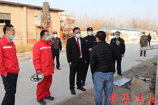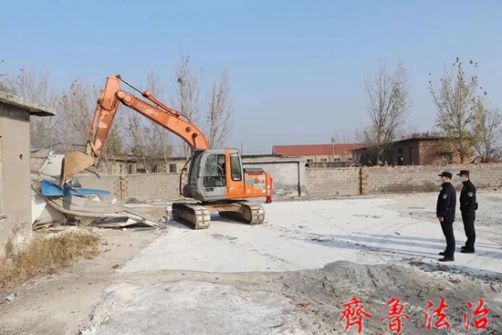 11月17日,东营利津法院执行局组织16名干警,出动警车4辆,重拳出击,强制腾退被执行人王某某侵占某采油厂的涉案土地,包括复合板房20间、采瓦房、棚子等设施。