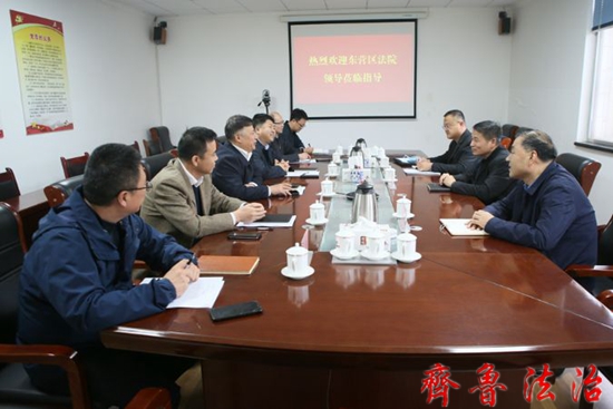 齐鲁法治(东营讯)李春军 为进一步落实全市优化营商环境有关工作专题调度会议精神,切实推动市场主体满意度整体提升,东营市东营区法院党组书记、院长丁文强,党组成员、副院长李乃煊,综合办公室负责人万涛一行前往中石化胜利建工公司进行座谈,公司执行董事、党委书记纪国庆,公司总经理、党委副书记牛尚峰等陪同参加。