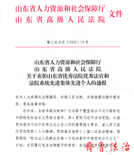 东营广饶法院被山东省人力资源和社会保障厅、山东省高级人民法院授予“山东省优秀法院”荣誉称号(全省7家),李美芹法官获评“山东省优秀法官”(全省30名)。