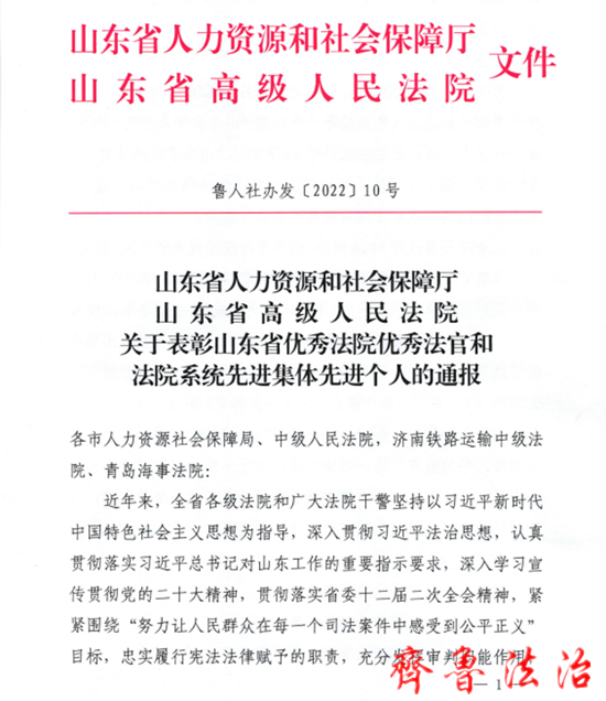 齐鲁法治(东营讯)李春军 11月15日,第二十五次全省法院工作会议在济南召开,会议通报表彰了7个全省优秀法院、30名优秀法官和法院系统30个先进集体、60名先进个人。东营法院3个集体、5名干警受到表彰。其中,广饶县人民法院荣获“山东省优秀法院”,广饶县人民法院未成年人案件综合审判庭庭长、一级法官李美芹荣获“山东省优秀法官”,东营市东营区人民法院刑事审判庭、利津县人民法院陈庄人民法庭荣获“山东省法院系统先进集体”,东营市中级人民法院刑事审判第三庭二级法官助理徐爱丽、东营市中级人民法院法警支队支队长 四级高级警长刘树建、东营市垦利区人民法院行政审判庭一级法官尚学三、东营经济技术开发区人民法院综合审判庭一级法官王建彩荣获“山东省法院系统先进个人”。